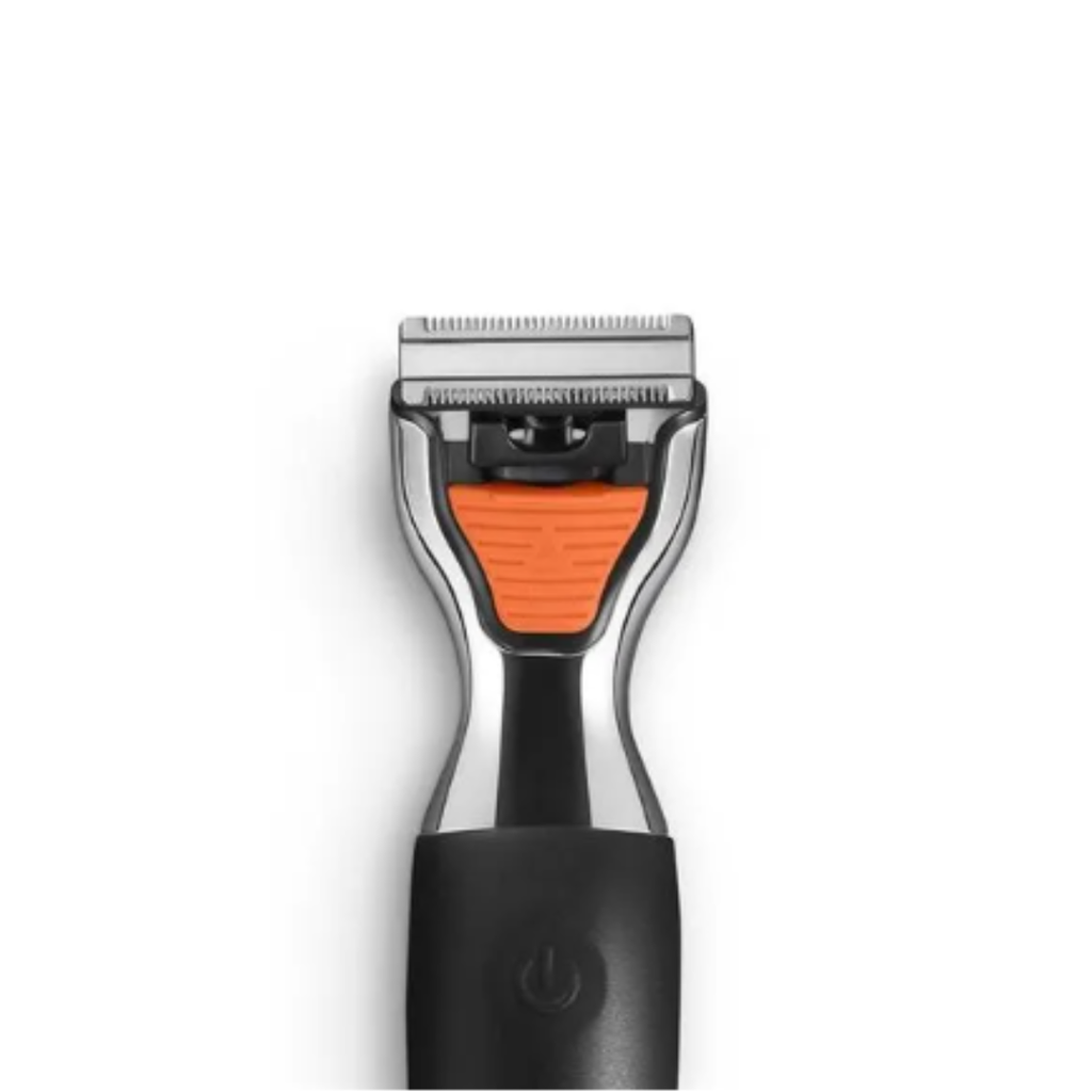 Possui 20 níveis de ajuste de altura, carregamento por USB, lâminas de alta resistência e é resistente à água, podendo ser usado com a pele seca ou molhada.