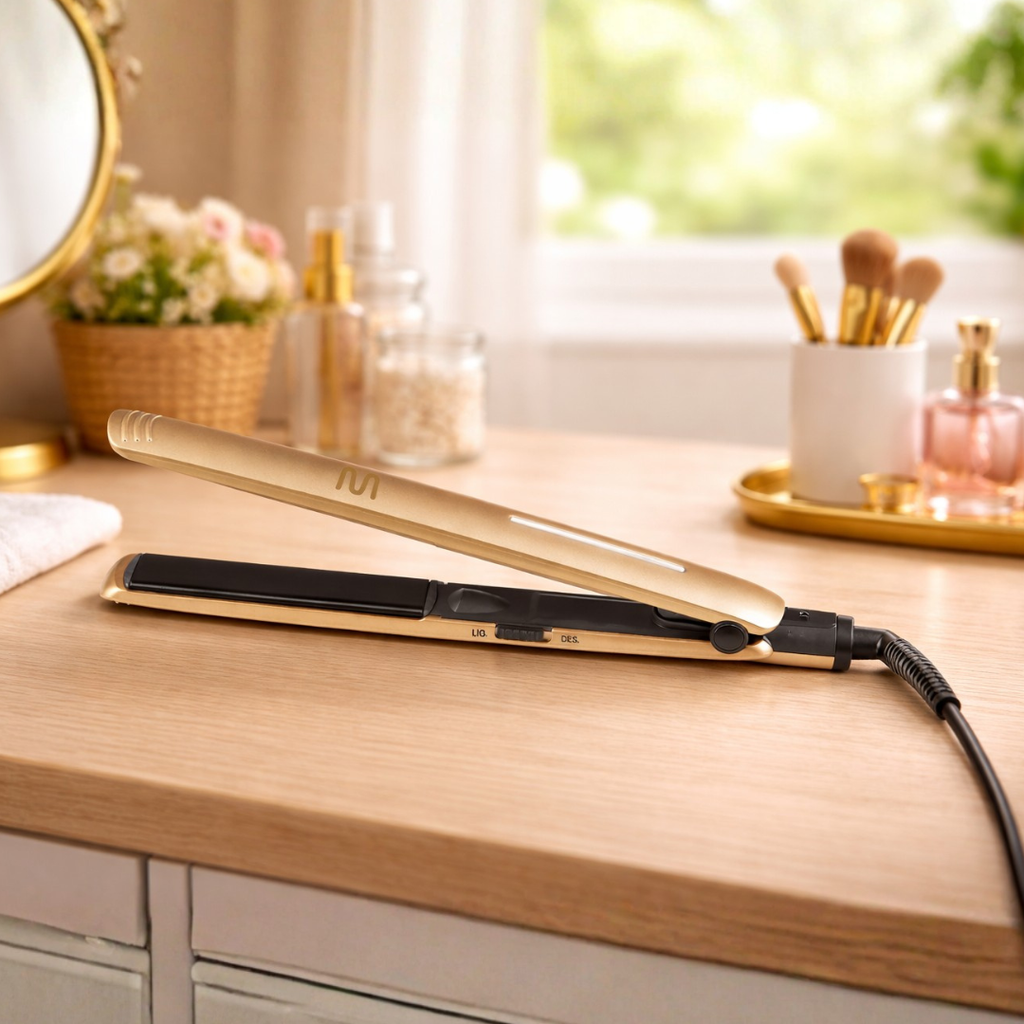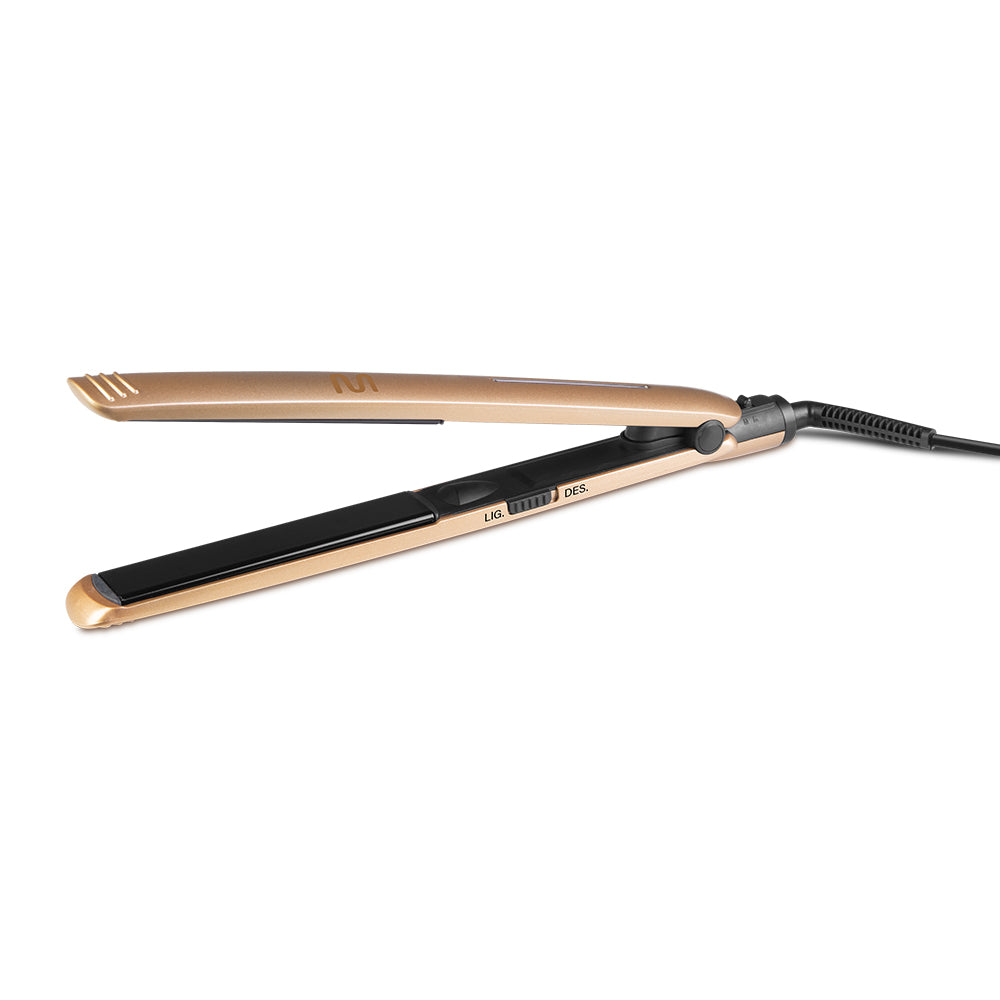 Com 45W de potência, esta prancha atinge até 220°C, ideal para alisar ou encaracolar o teu cabelo, oferecendo um resultado profissional em casa